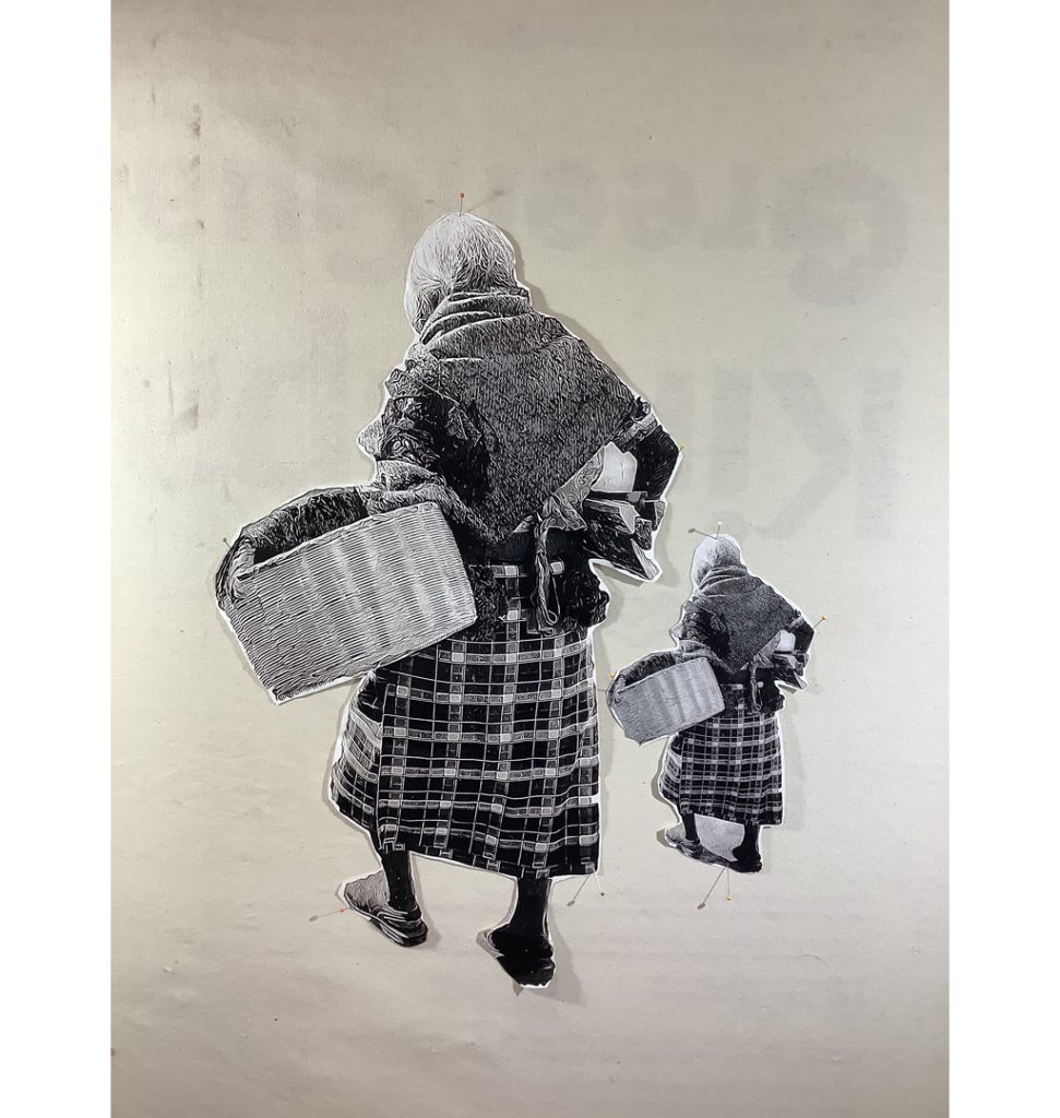 But I felt a need to zero in more on the ladies so, I blew up the photographs in different scales to explore different compositions and approaches to the style of the piece.