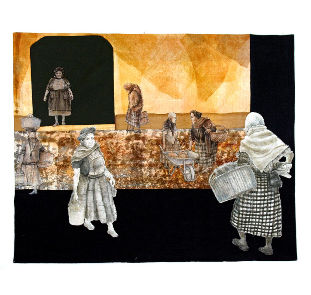 Because I do both fiber sculptures and art quilts I draw on a variety of techniques and resources to develop my ideas and imagery. I find a lot of inspiration for projects in the news, on Instagram, and on Pinterest. Because of my theater training I also greatly enjoy collaborating with other artists and photographers.