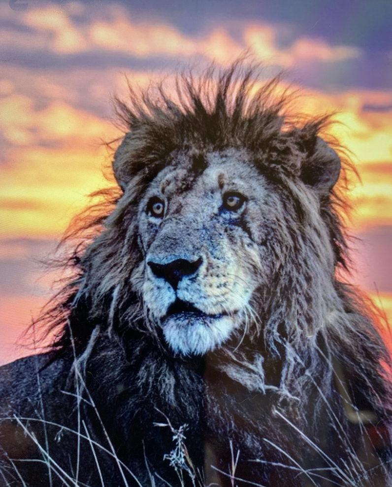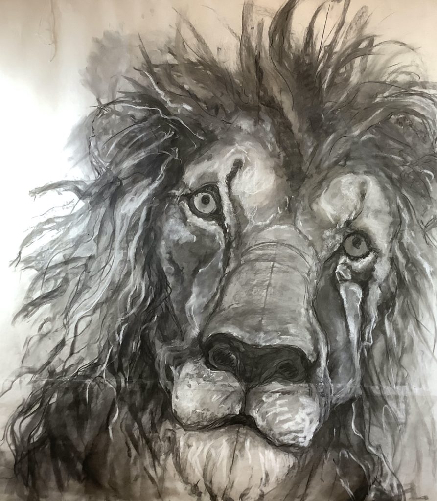 Poses with emotional connections are my priority in portraiture. I saw an image of an old scarred lion and fell in love. I got permission from the photographer Leighton Lum to develop drawings based on several of his photos of the oldest lion in Kenya.