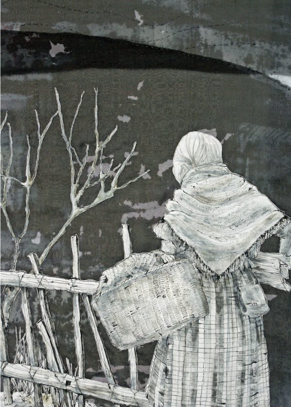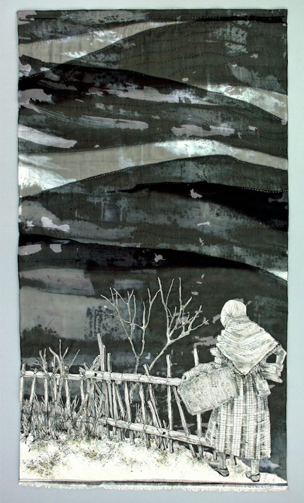 Techniques: dye painting, ink drawing, hand embroidery, free-motion quilting