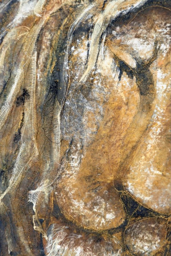 Techniques: hand drawing and painting, hand embroidery, free motion quilting.