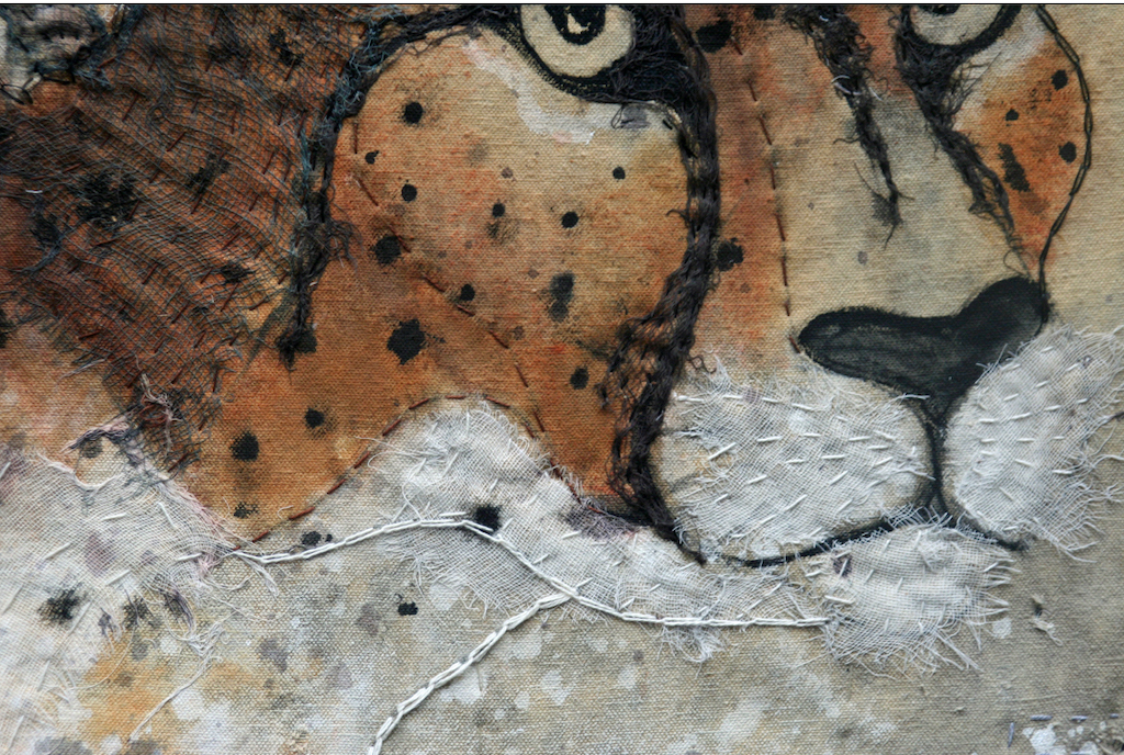 Materials: old tarp, army blanket, organdy, fabric paint, perle cotton
