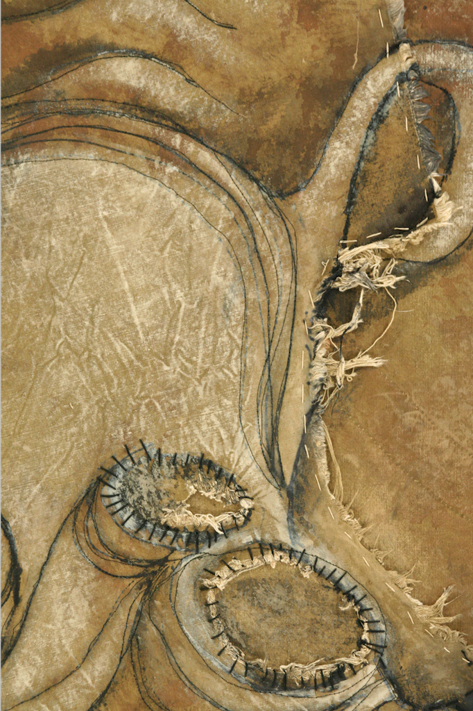 Techniques: Raw edge appliqué, hand drawn and painted hand embroidered